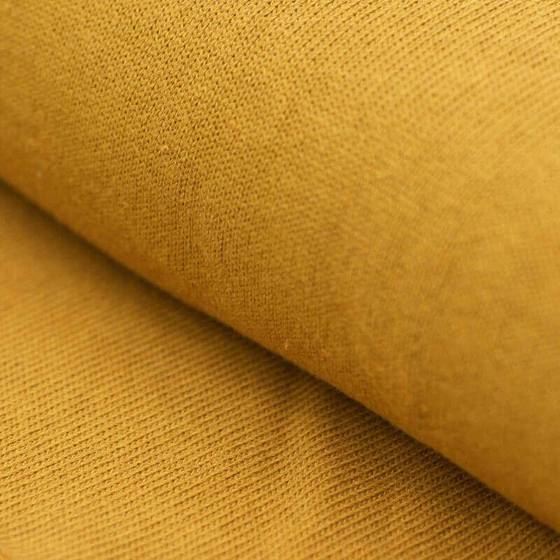 Baumwoll Strick-Stoff in ocre. Eignet sich super für coole Babymode, Babydecken, Halstücher und Beanies.