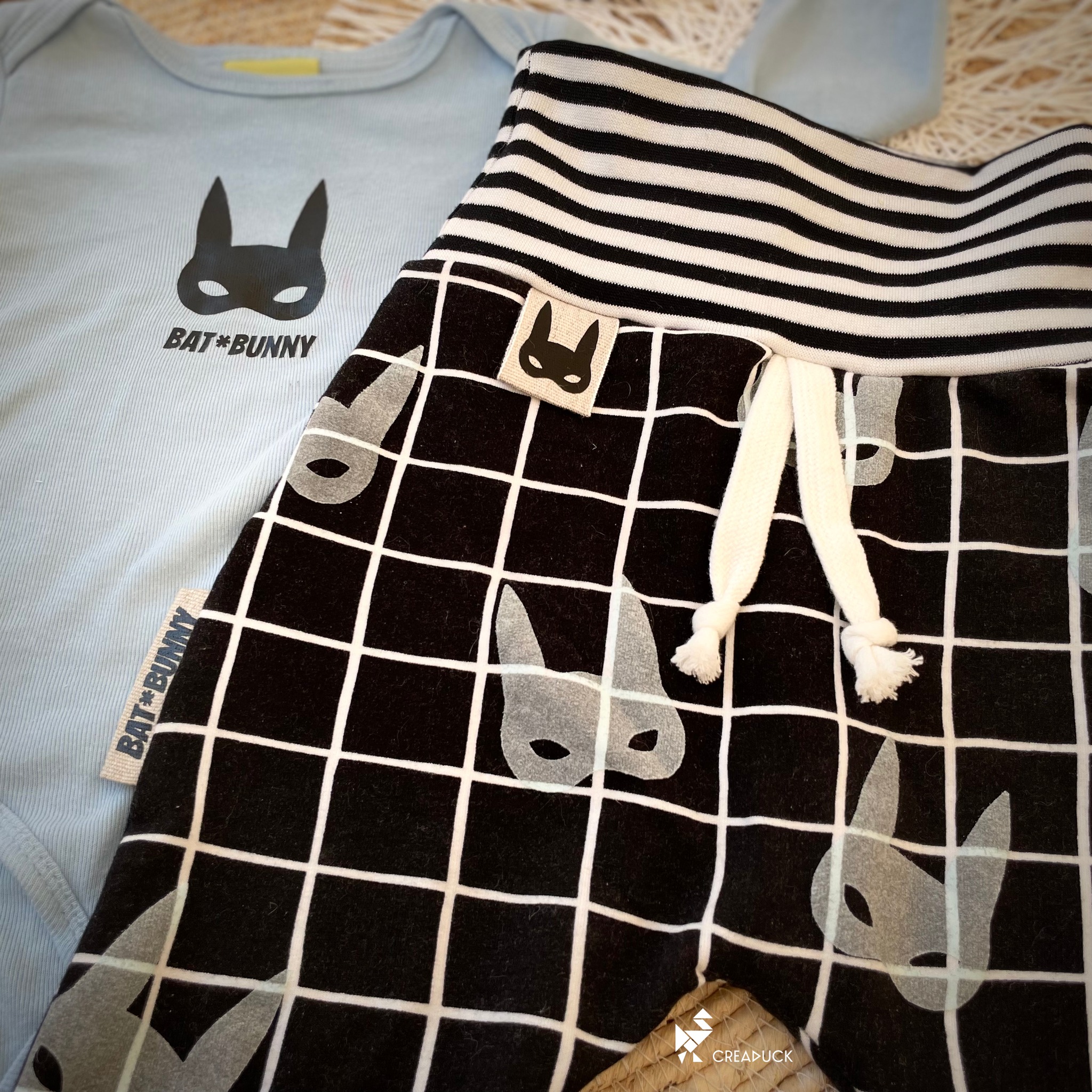 Hier findest du 3 separate Dateien, mit denen du ein cooles Design erstellen kannst. Die Bat Bunny Datei mit dem Schriftzug “Bat Bunny” und ein paar handgemalten Dreiecke, inspiriert von meinem Stoffdesign. Die Dateien sind jeweils in DXF, SVG und PNG vorhanden. Auch als Applikationsvorlage oder Siebdruck eignet sich der Batbunny ideal… mach dir deinen eigenen Stoff 🙂