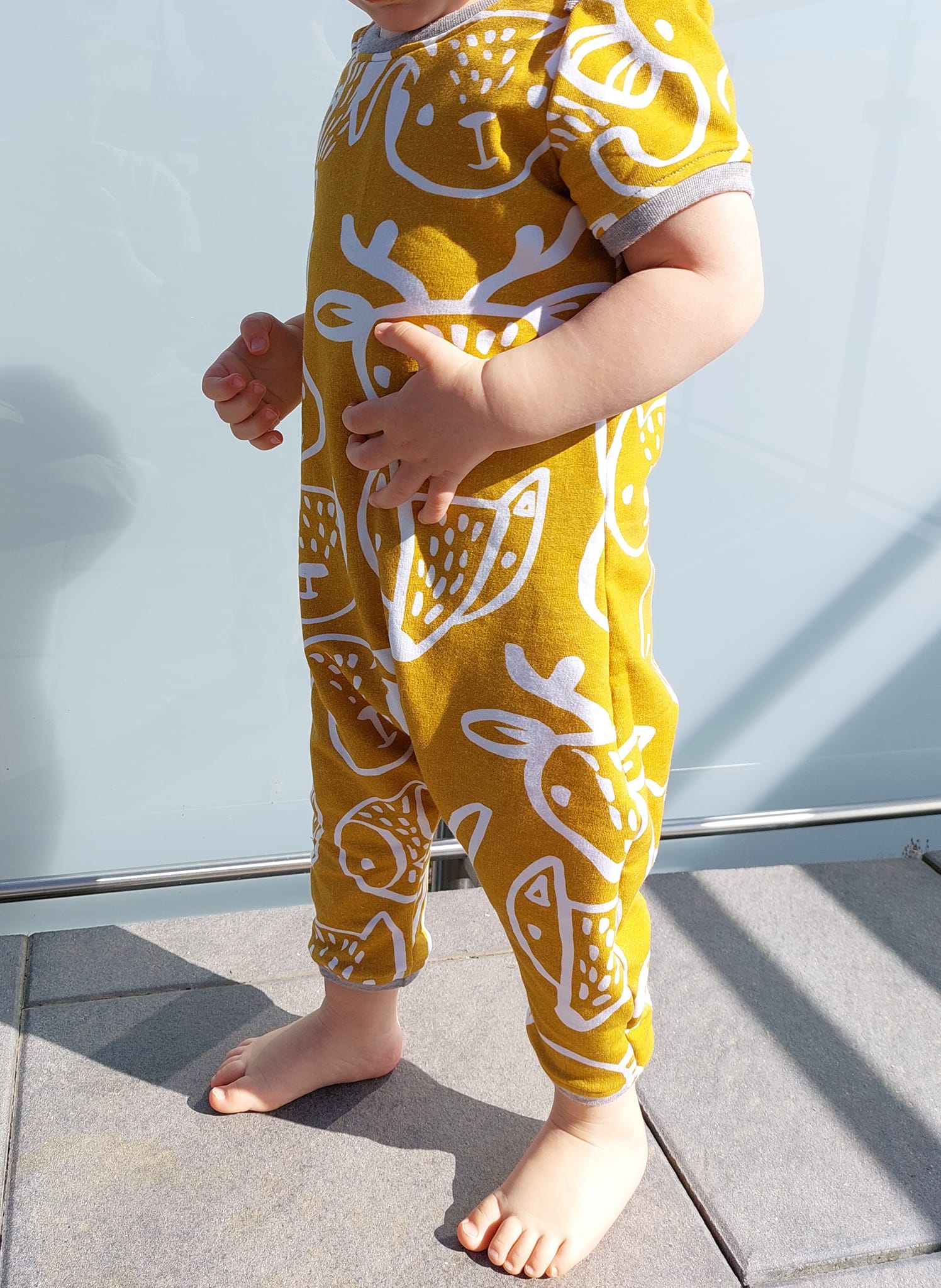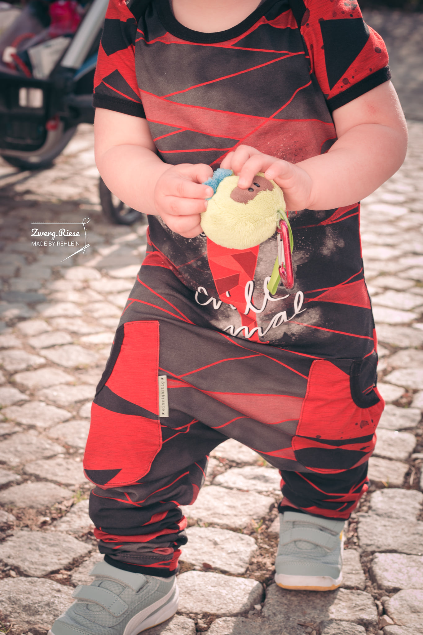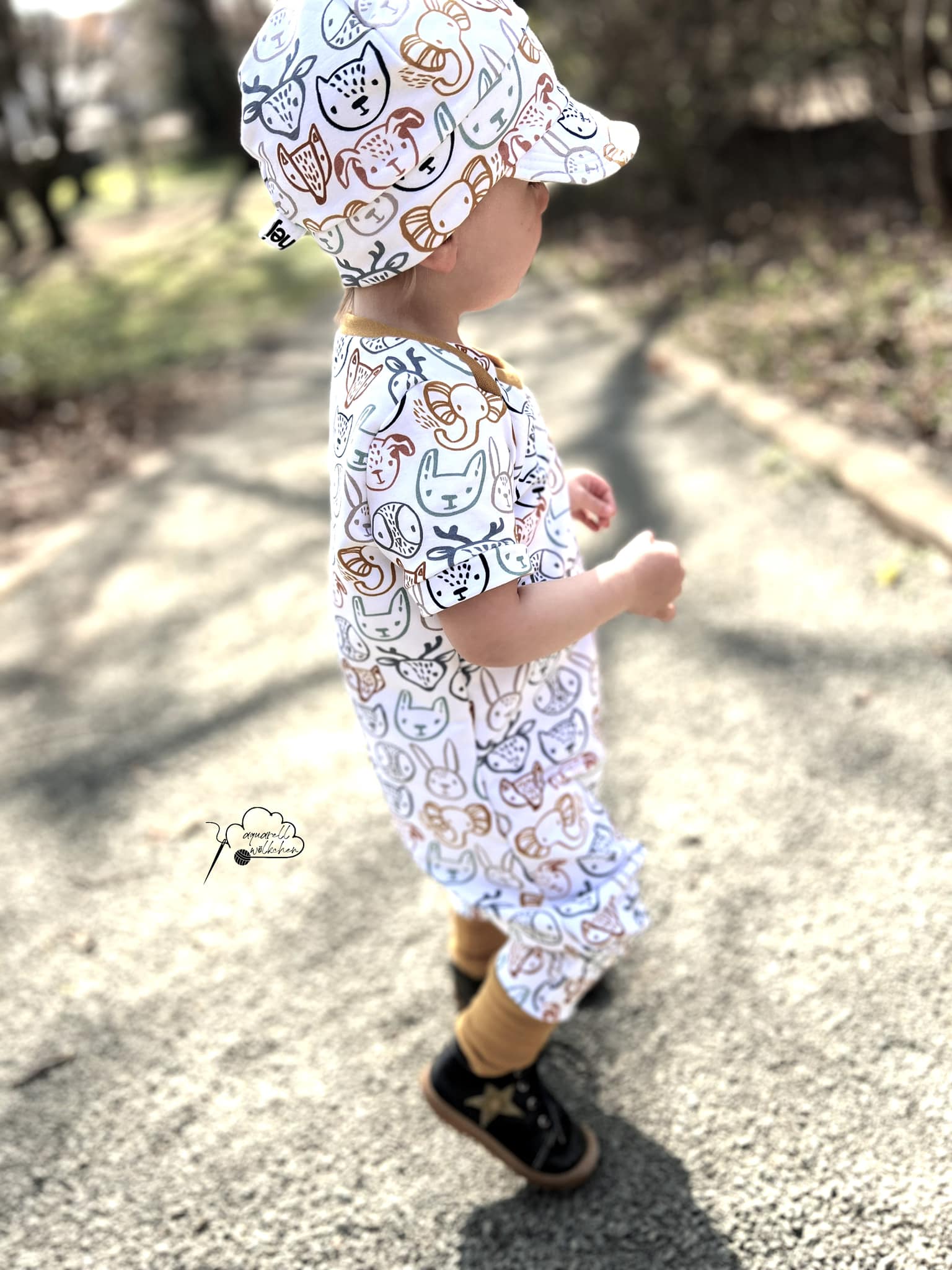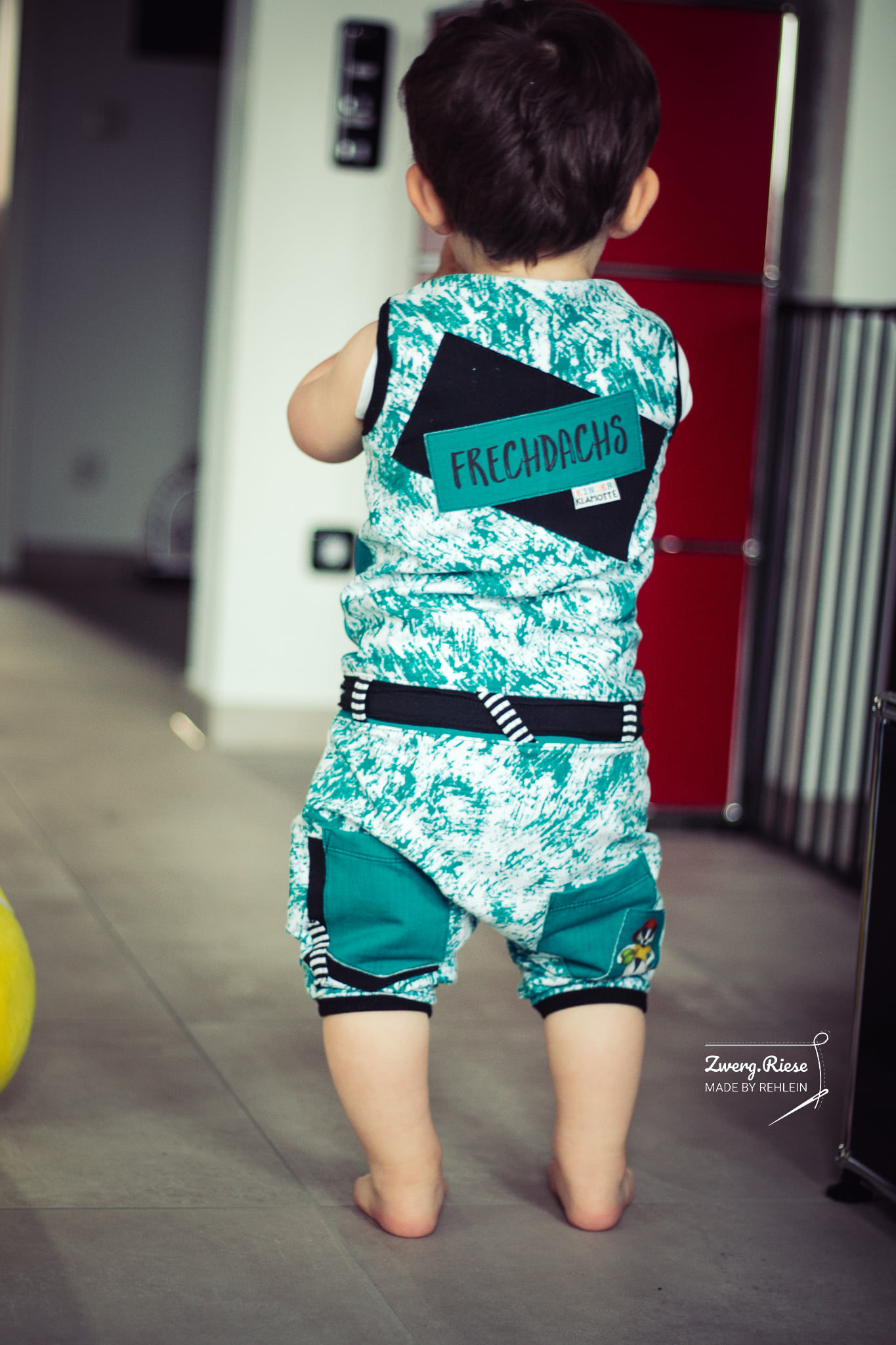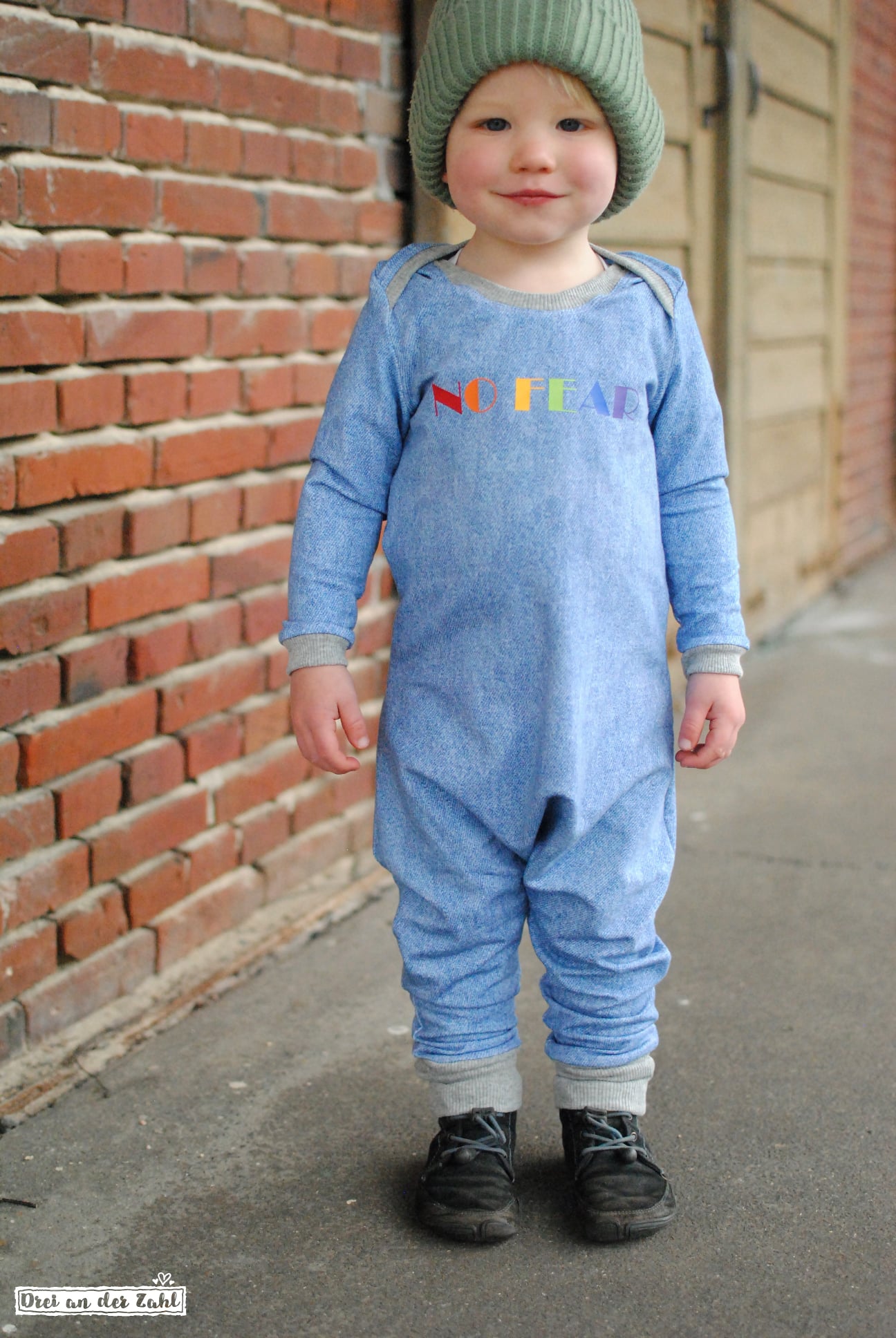 Der Jump*ee ist ratzfatz aus 2 Teilen, einen Vorder- und einen Hinterteil genäht, es hat keine Knöpfe oder sonst kompliziertes, somit ist es auch für jeden Anfänger easy-peasy genäht. Eure Kleinen schlüpfen ganz einfach durch die Halsöffnung, die Dank des amerikanischen Kragens super dehnbar ist und ganz schnell an und ausgezogen ist.