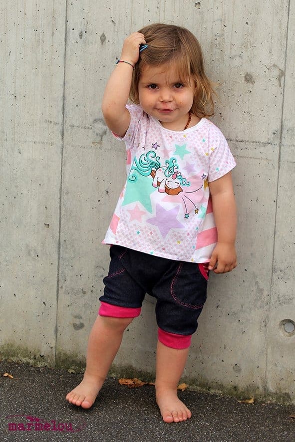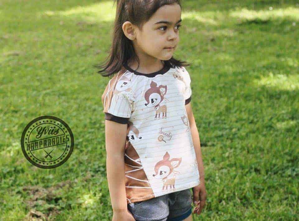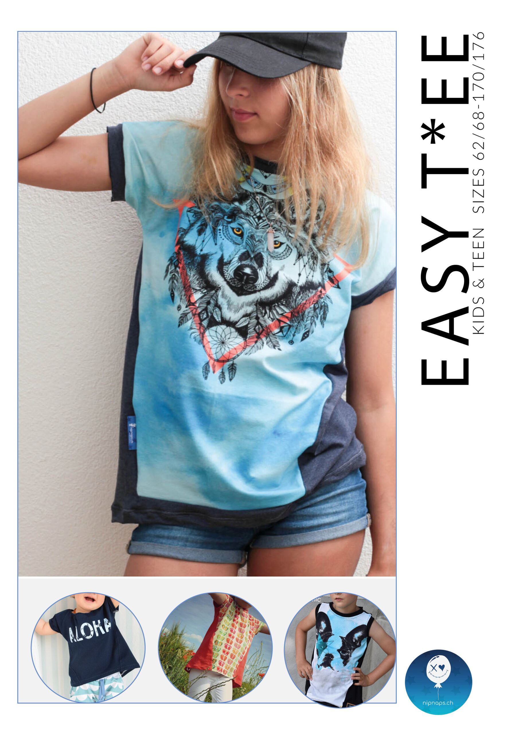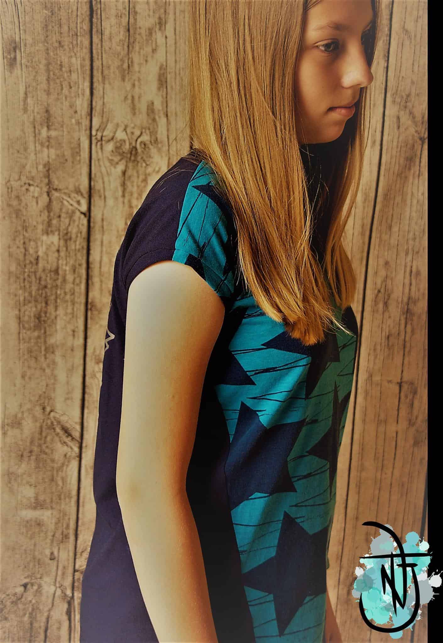 Das eesy Tee ist ein ganz einfacher Schnitt, der ratzfatz genäht und auch für Anfänger geeignet ist. Aus nur 2 Teilen kannst du blitzschnell ein cooles Sommertop nähen, welches Dank der speziellen Schnittführung ein richtiger Hingucker ist! Das eesy Tee ist eine Vereinigung von 2 Nipnaps Schnitten; die Ärmel vom „eesy Dress“ zusammen mit dem „Tee“, welches separate Raglanärmel hat! In der bebilderten Nähanleitung findest du auch ein kurzes Tutorial für „faule Bündchen“ somit brauchst du lediglich 2 Stücke Jersey und eine Nähmaschine um dieses coole Tee zu nähen