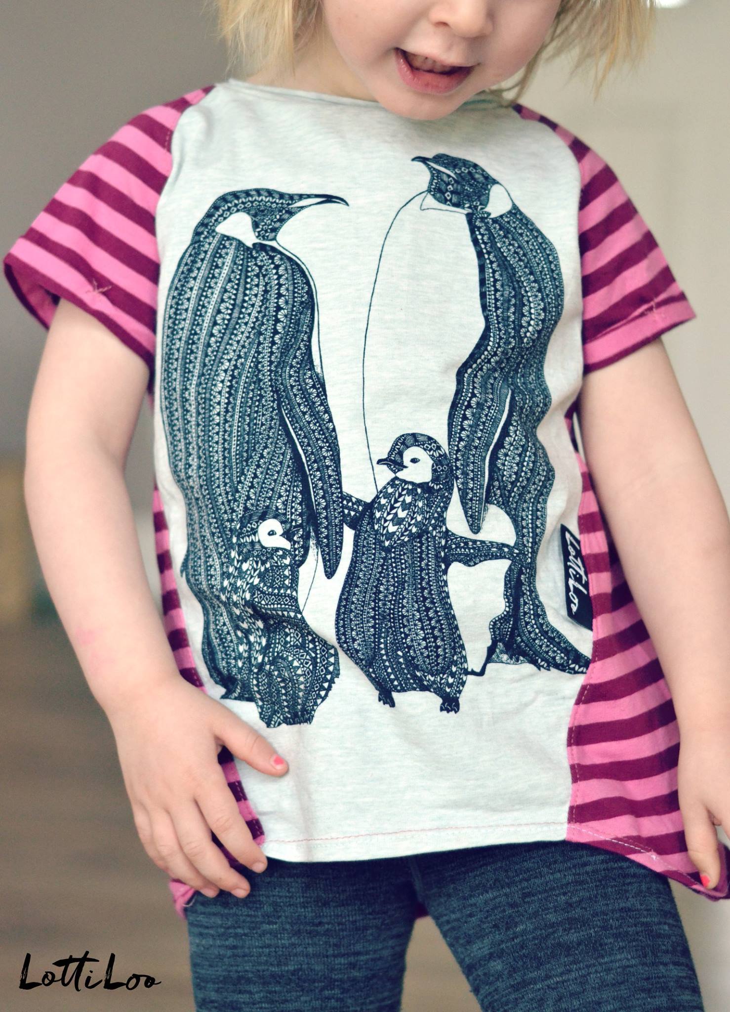 Das Tee ist ein baggy fit T-Shirt mit Raglan Ärmeln in Doppelgrössen 62/68 bis 170/176.