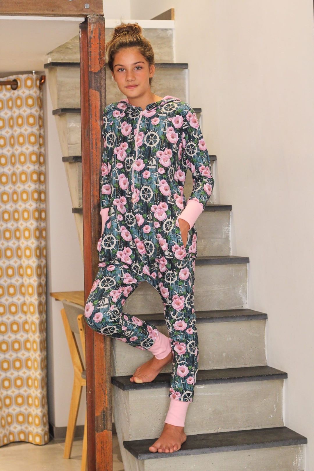 Romp*ee ist ein slimfit harem Romper…. er ist schmal geschnitten mit langen Bündchen an Armen und Beinen. Man kann ihn mit Kapuze oder einfach Bündchen abschliessen, zudem gibt’s folgende Variationen: