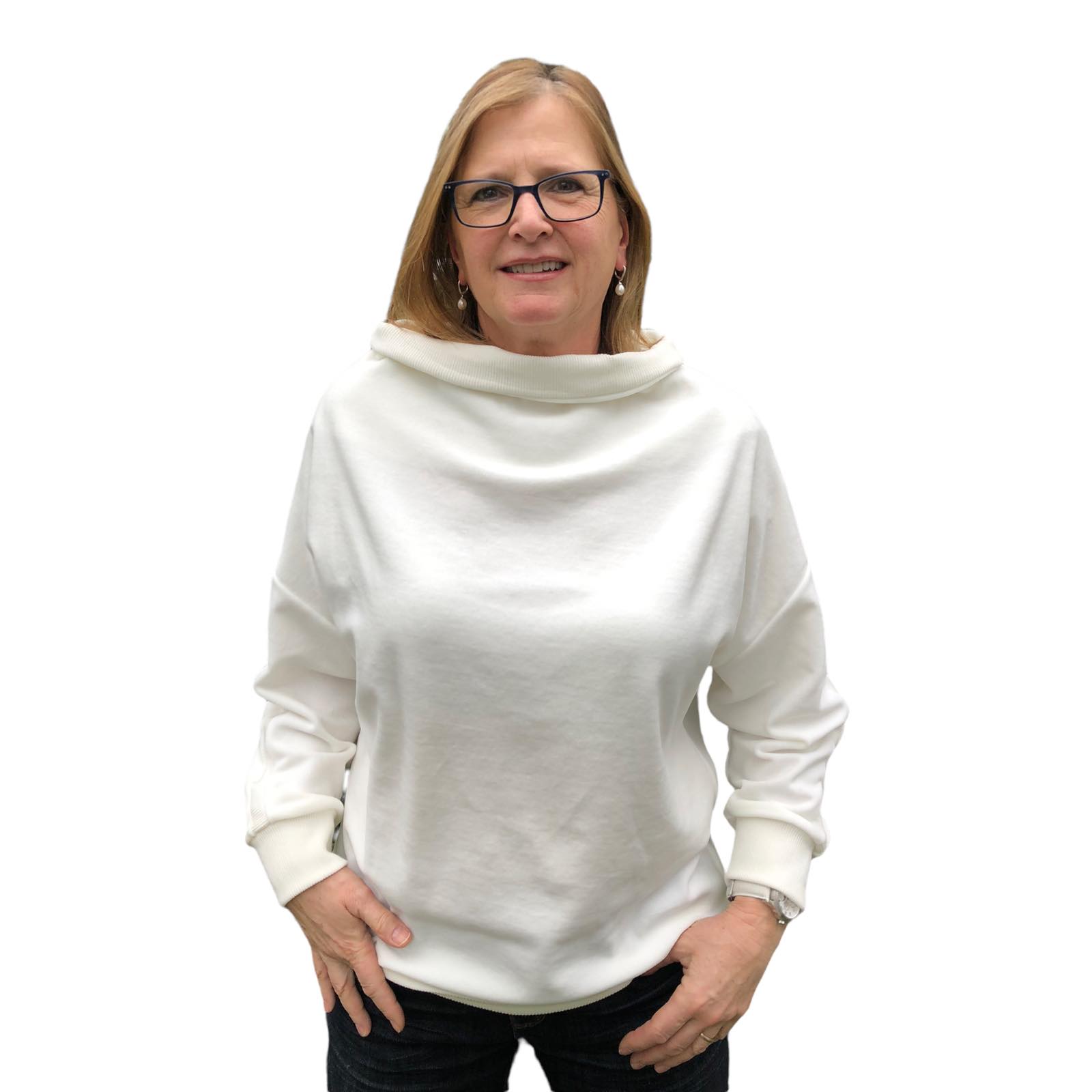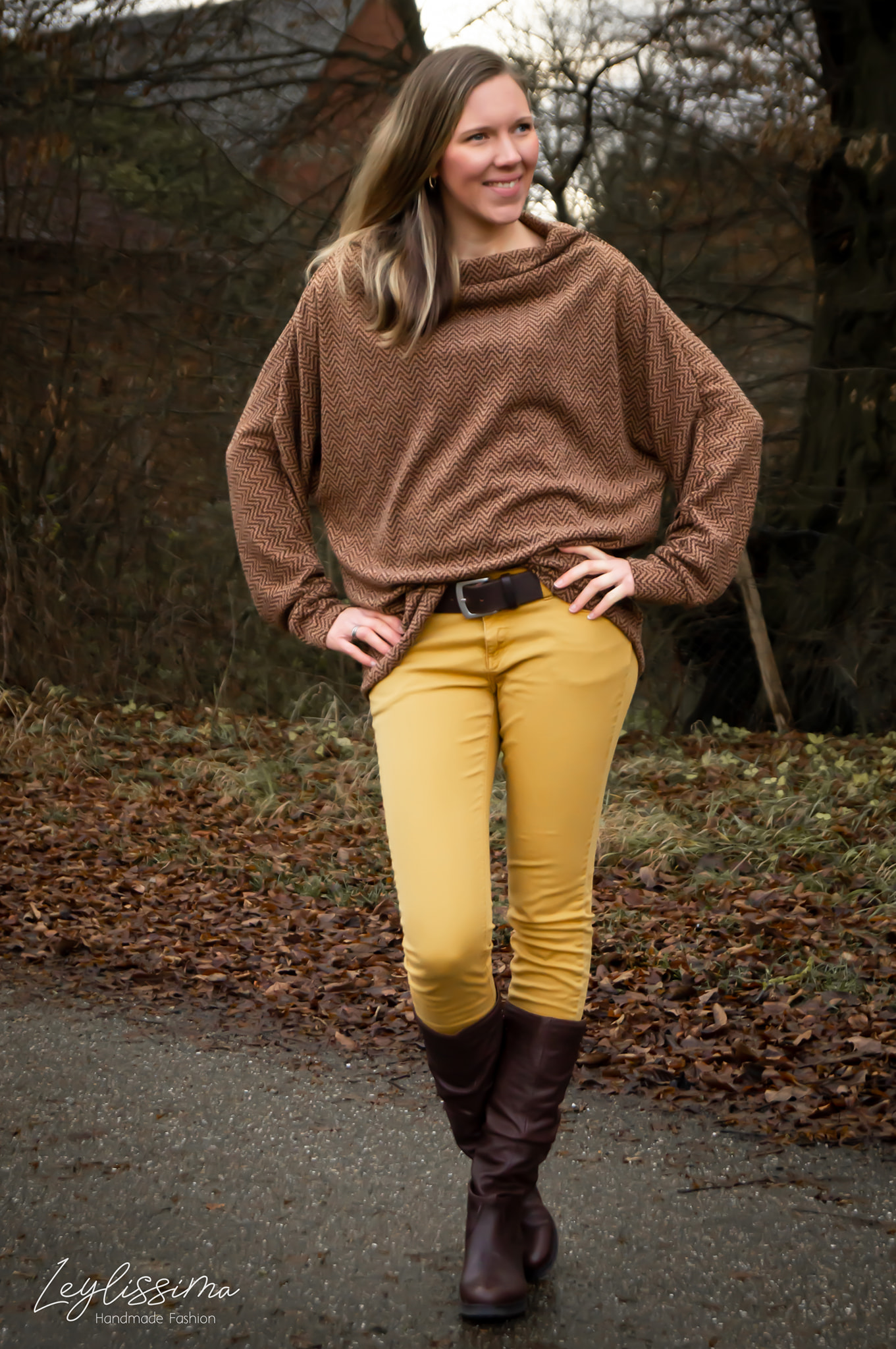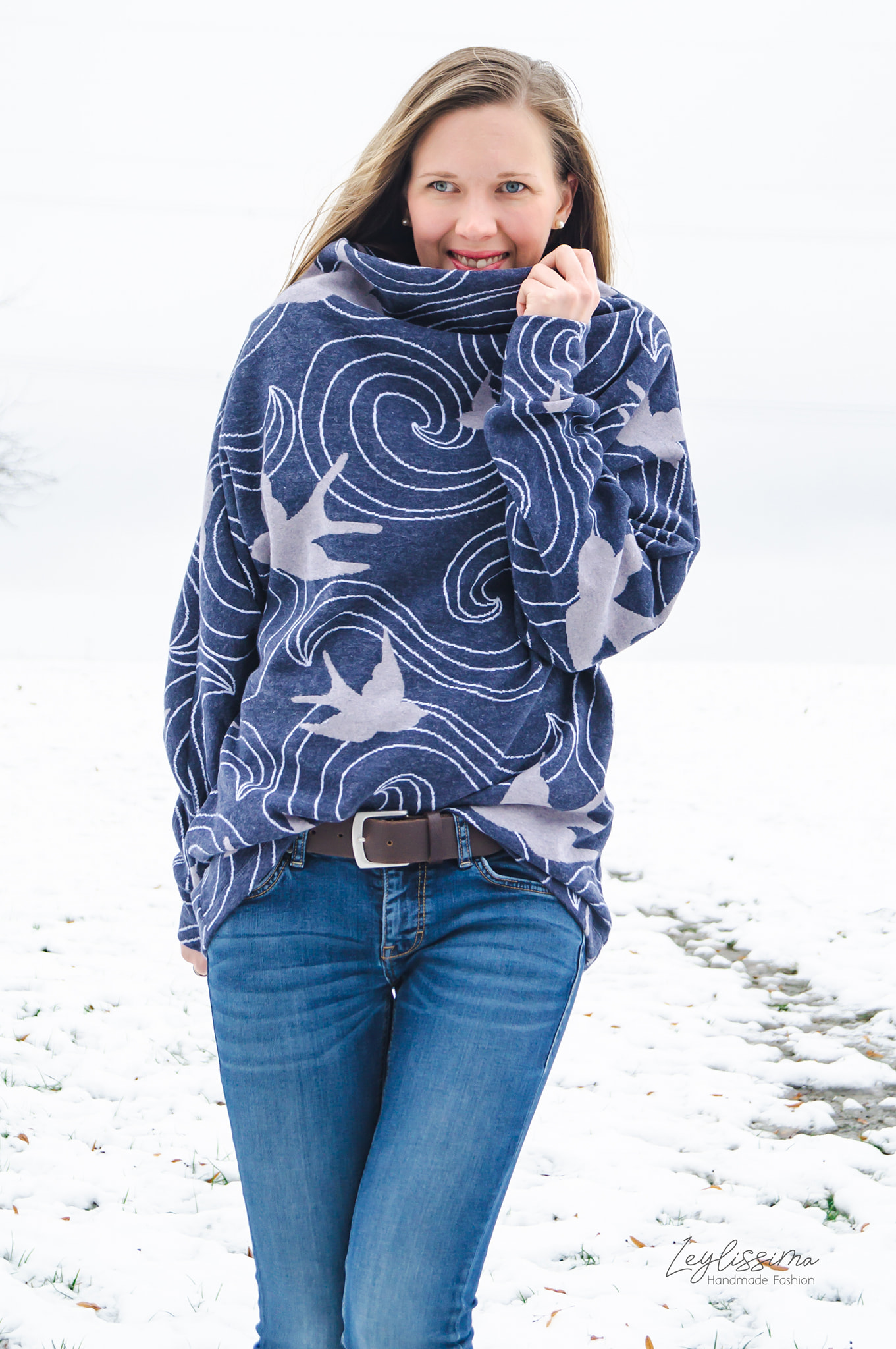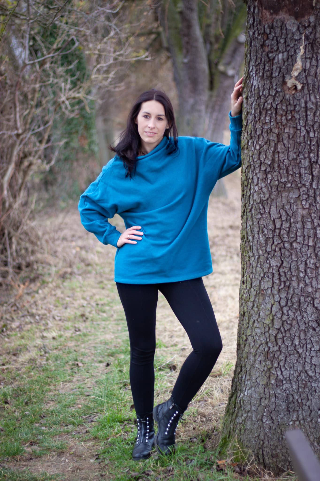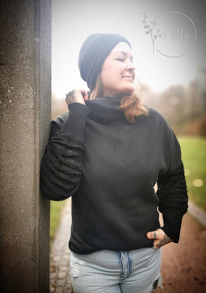 Figur gut oversize sitzt, aber nicht sackig wirkt. Der coole Kragen mit Beleg ist ein wahrer Hingucker! Der Schnitt kann aus einem kuscheligen Sweat, Fleece oder Strick genäht werden. Der Stoff sollte einen gewissen Halt haben, damit der Kragen etwas steht. Dünnere Stoffe wie zB. Sommersweat können mit einer Bügeleinlage am Kragen verstärkt werden. Der Simpl*ee kann im lässigen vokuhila Style gesäumt oder mit Saumbündchen genäht werden.