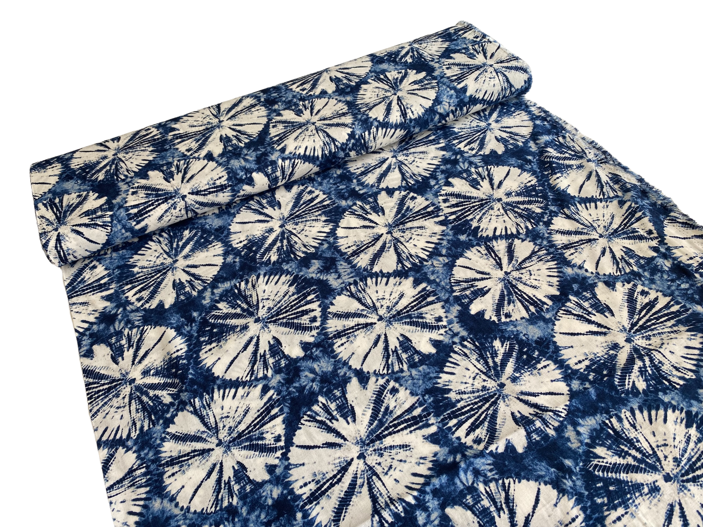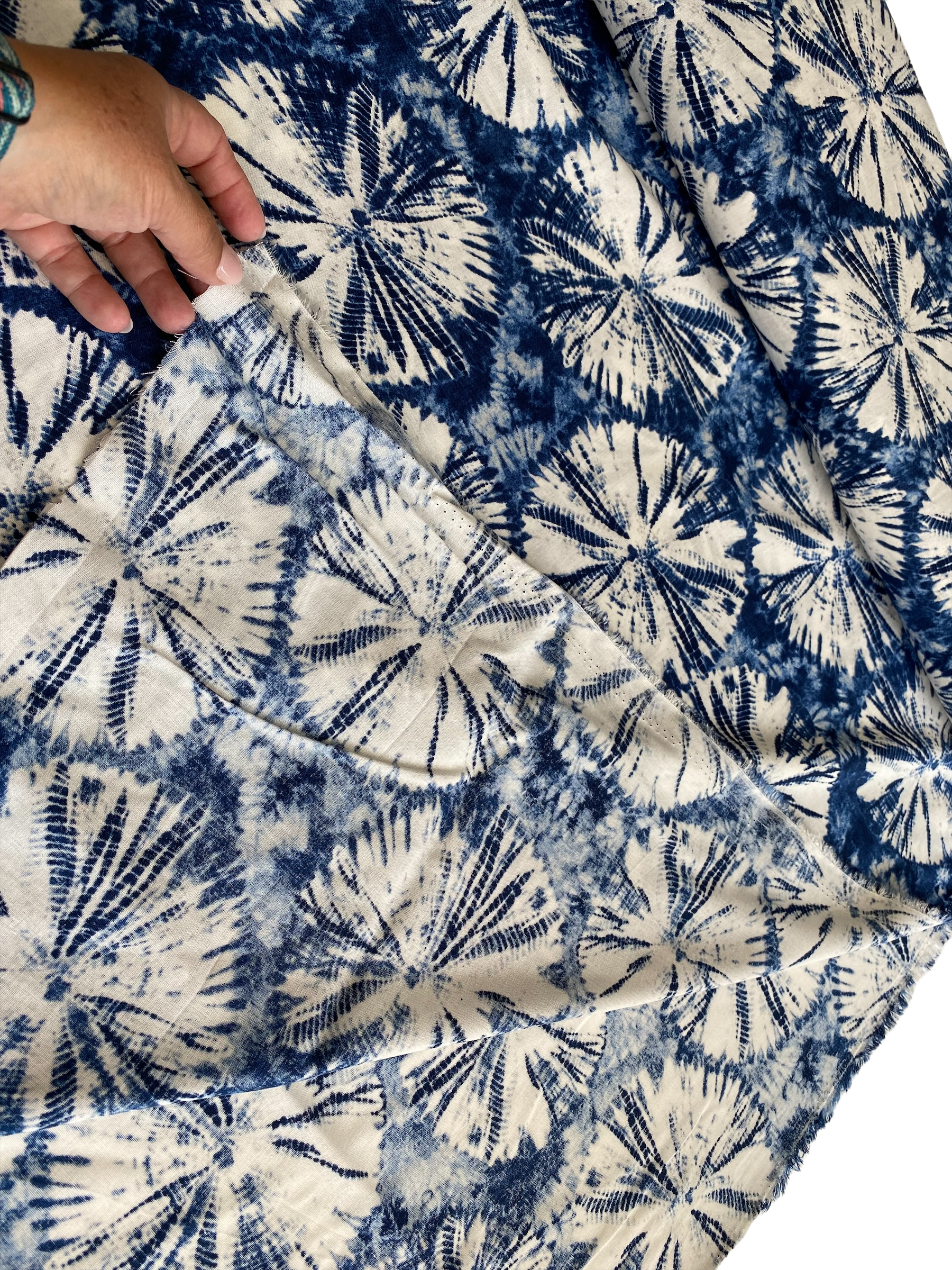 Viskose im Lisen Look mit Tie Dye Muster in Blau/ Weiss